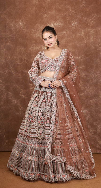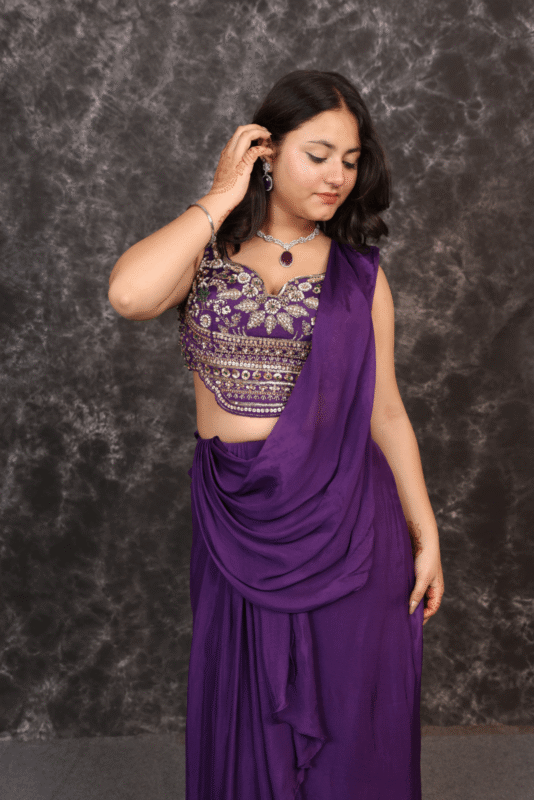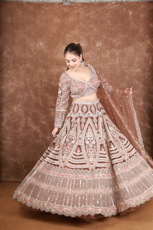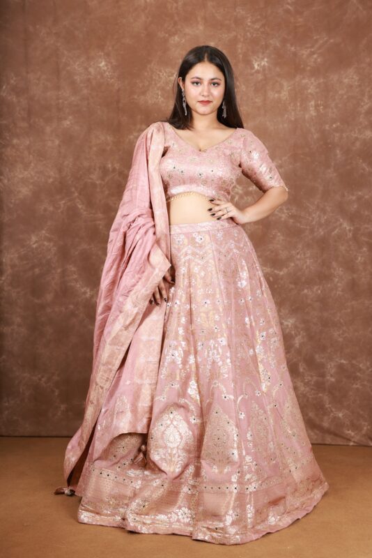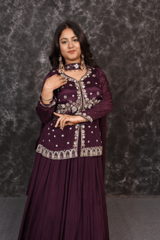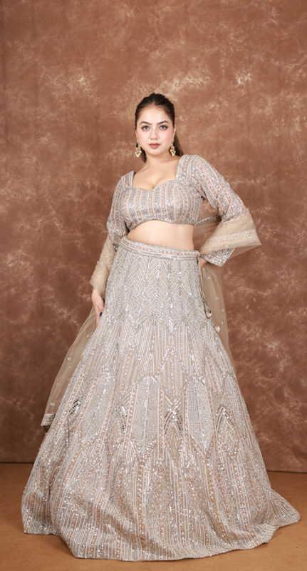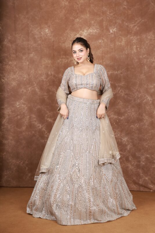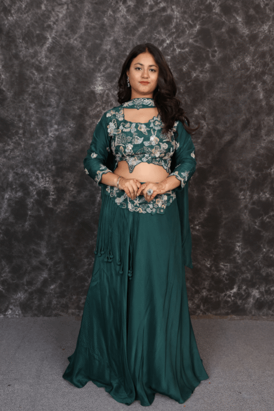 Elegant Crop Top Skirt with Butterfly Dupatta