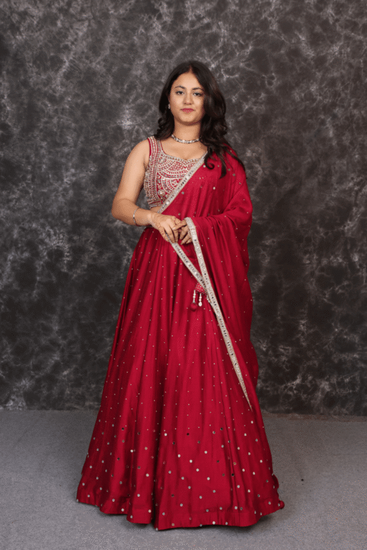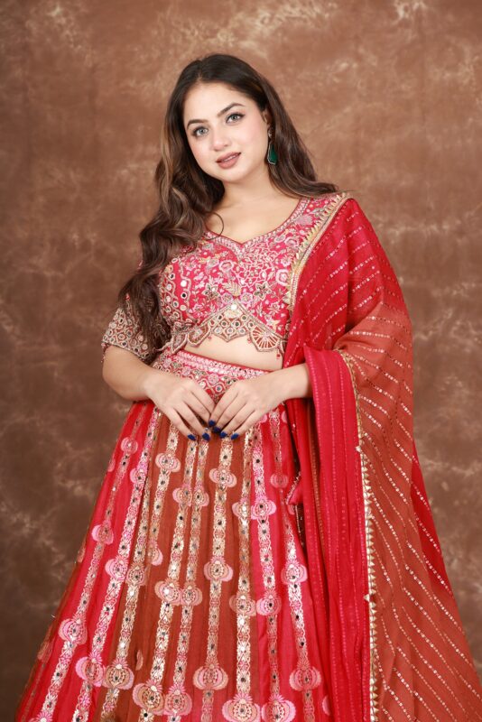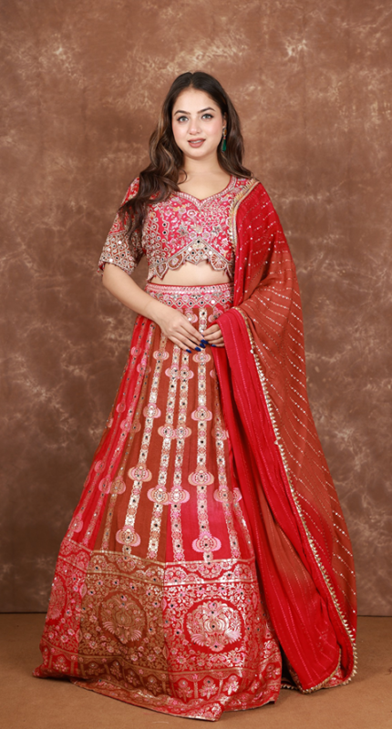 Red (Multi-Colour) Banarasi Silk Lehenga