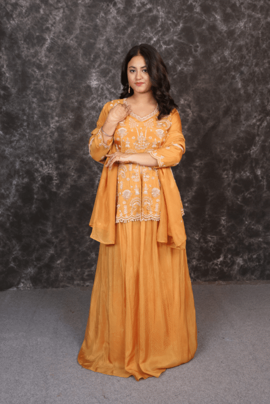 Yellow Crop Top Skirt with Butterfly Dupatta Lehenga