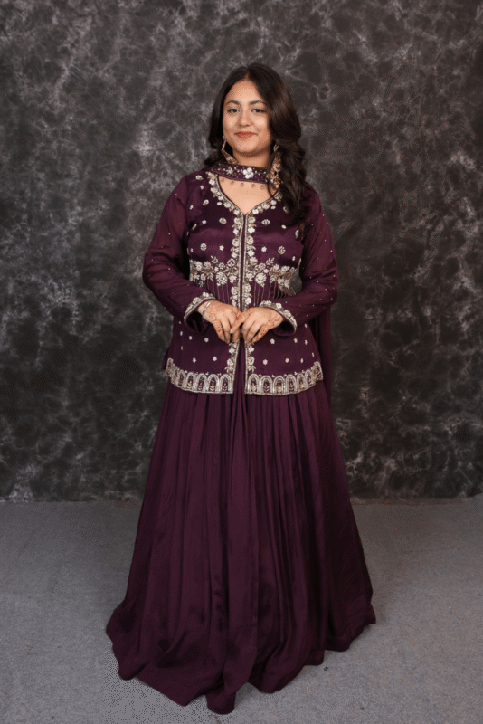 Front Slit Short Peplum & Skirt with Butterfly Dupatta
