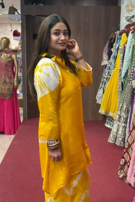 Yellow Kurti with Plazo Silk Co-ord Set