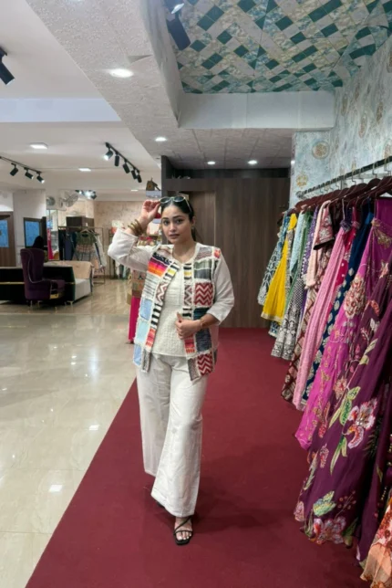 White Embroidery Short Kurti Jacket Co-ord Set with Plazo