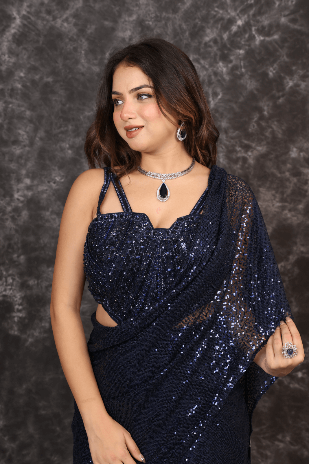 Step into timeless elegance with this Designer Navy Blue Co-ord Set Dress, crafted from premium Chinon fabric. The rich navy tone and graceful drape of the fabric create a luxurious look that’s perfect for festive occasions, parties, and special celebrations. Lightweight, stylish, and effortlessly chic—this co-ord set ensures you look stunning with minimal effort.