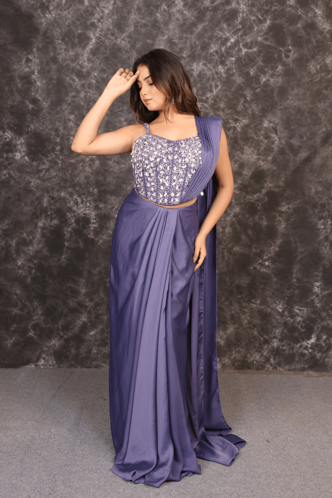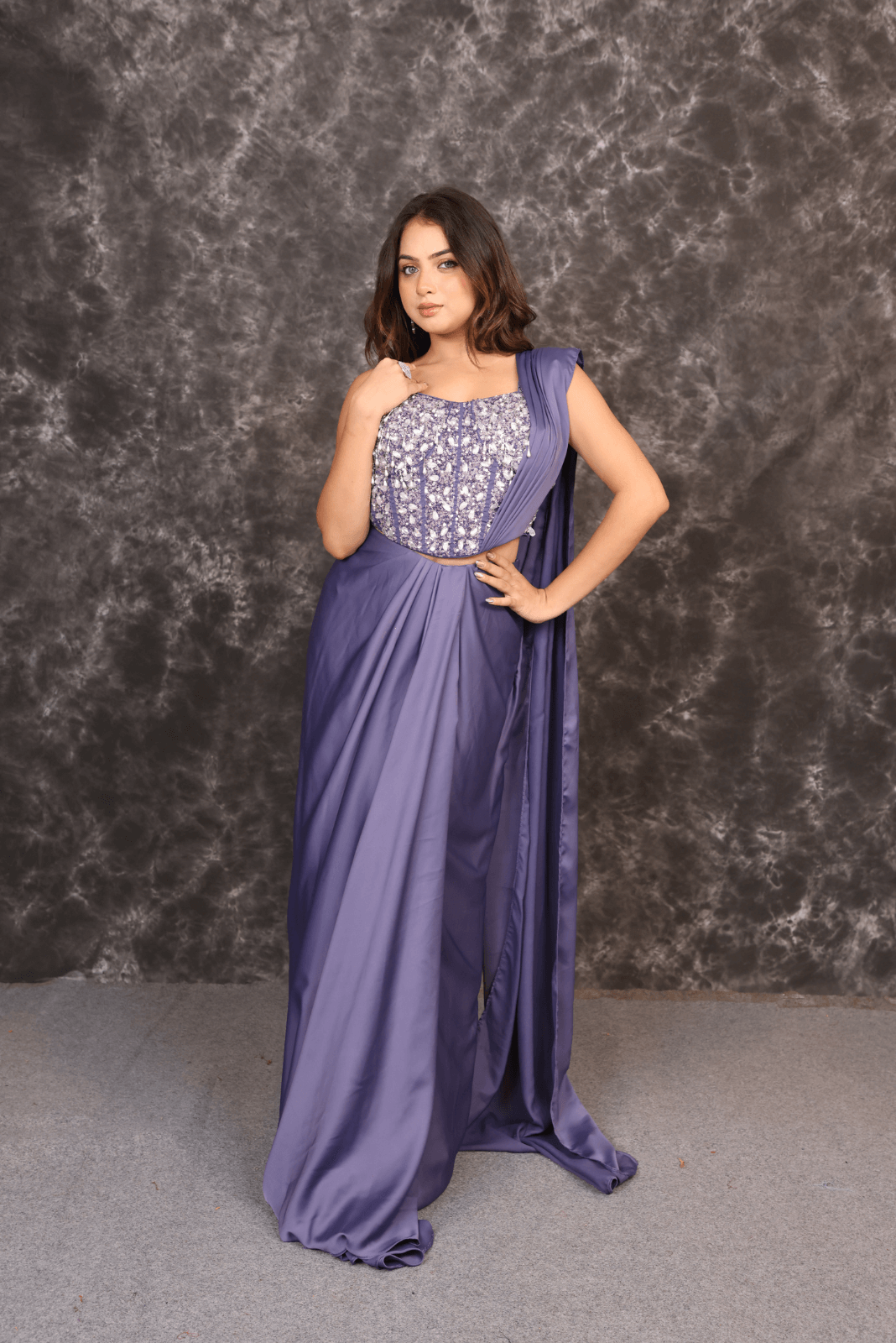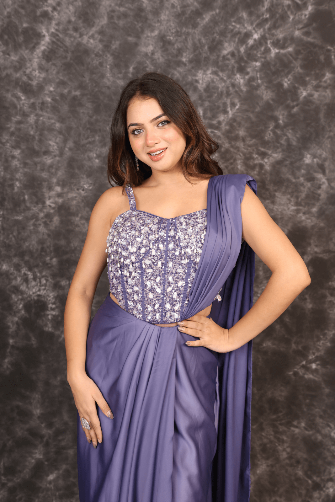 Step into elegance with this stunning Lavender Corset Drape Dress, crafted from premium imported fabric for a smooth, luxe finish.