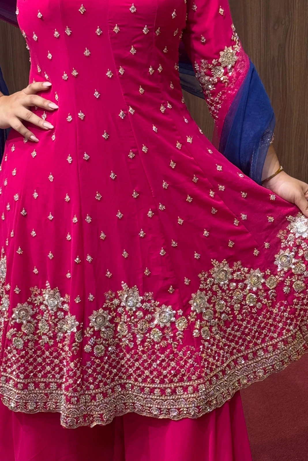 Kurti: Stylish short kurti in georgette, adorned with fine embroidery for a refined and elegant look.