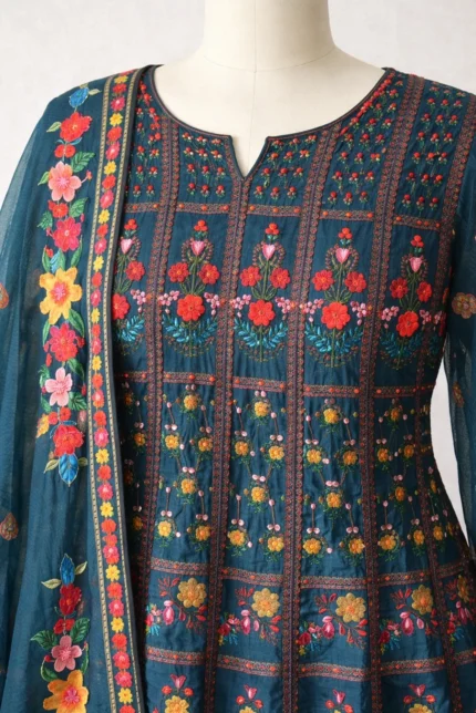 Elegant Katha work detailing for a handcrafted ethnic touch