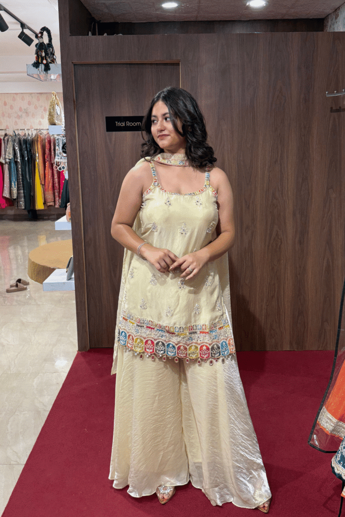 Bright, breezy, and effortlessly stylish — this light yellow short kurti plazo set is designed for modern festive dressing. Crafted in premium imported fabric, the kurti and plazo offer a chic silhouette, while the butterfly-style dupatta adds a playful and graceful flair. The soft pastel yellow shade makes it perfect for daytime functions, haldi ceremonies, or casual festive get-togethers.