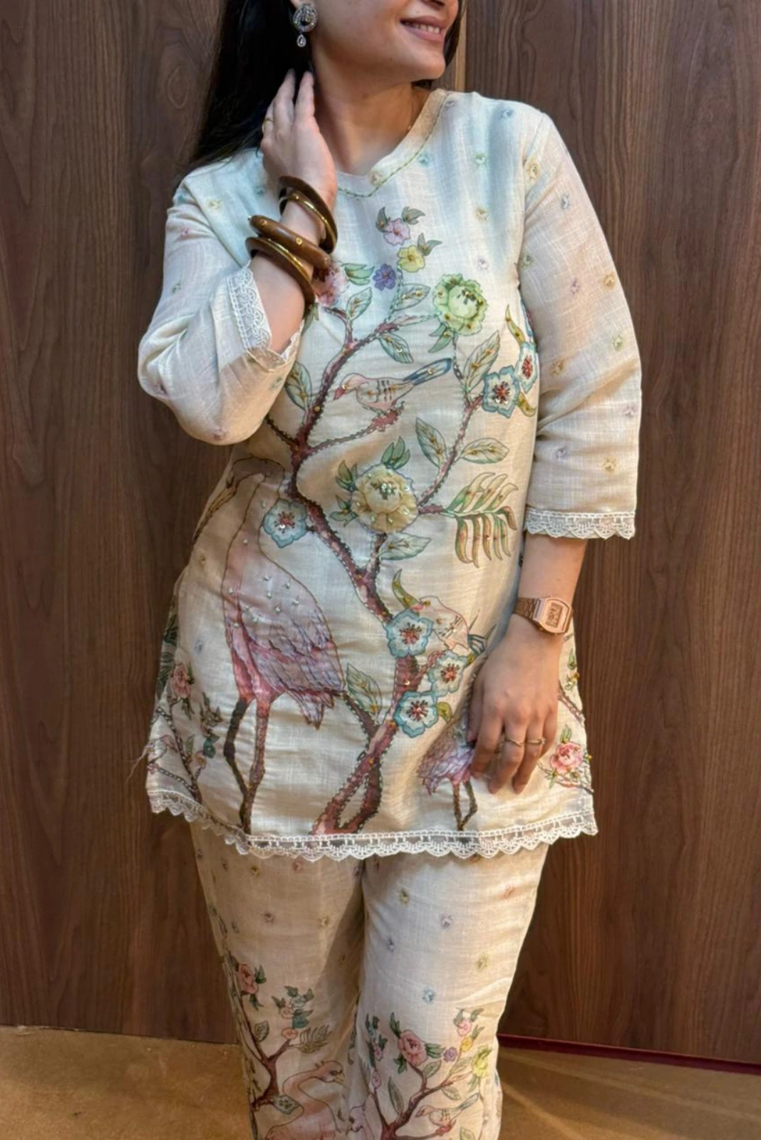 Elevate your everyday elegance with our Sequence Katha Work Short Kurti with Plazo Co-ord Set — a perfect blend of handcrafted charm and modern comfort. Designed in a crisp white shade, this set features a beautifully detailed short kurti with intricate Katha work and subtle sequence accents, paired with a flowy linen plazo for a refined and breathable look.