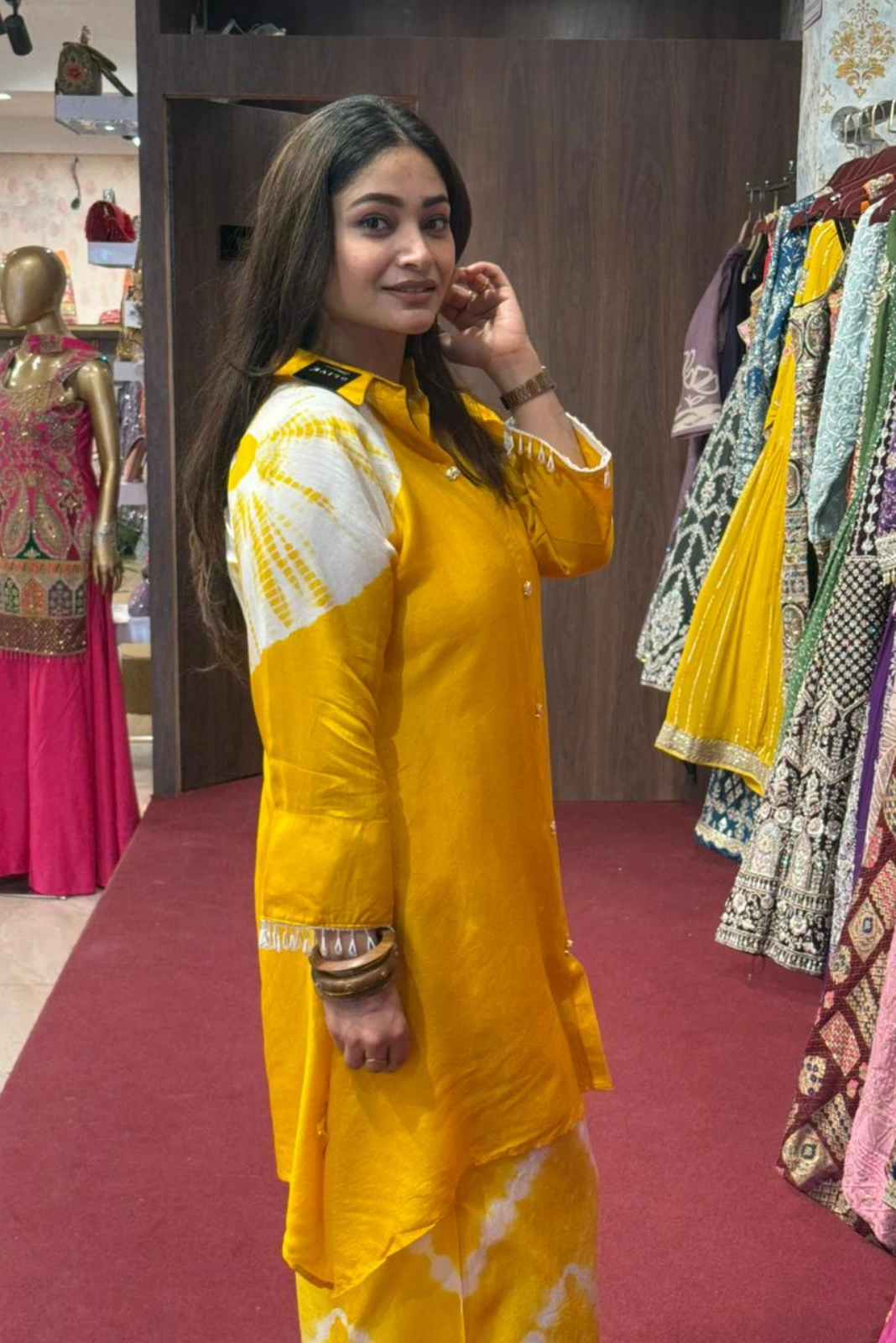 Premium silk fabric enhances the outfit with a rich, luxurious feel.